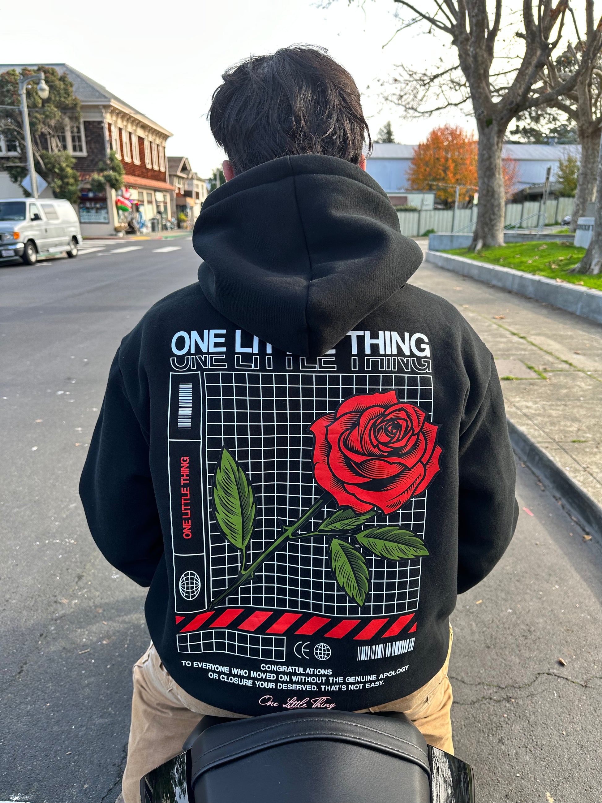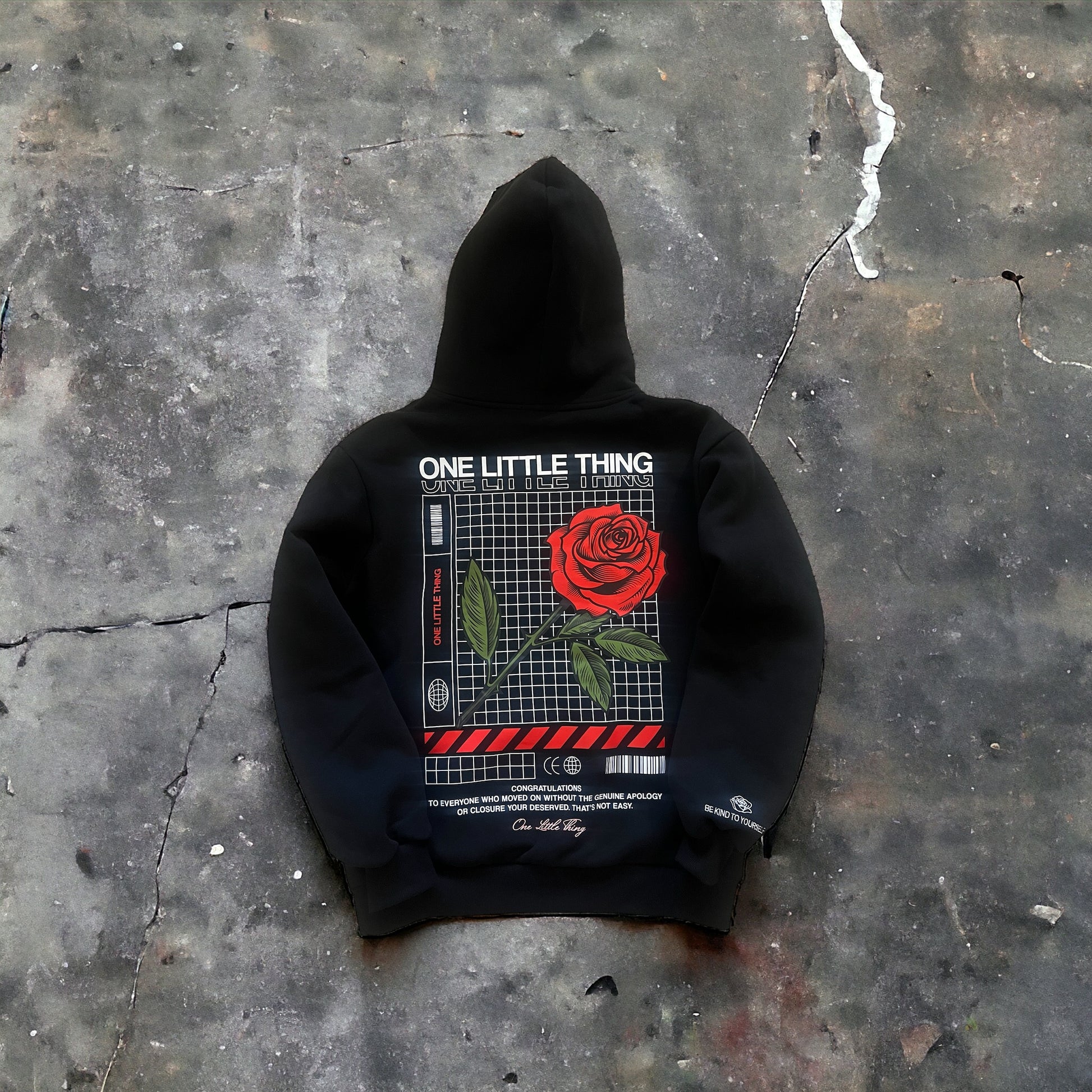 Embrace the journey within with our "One Little Thing" Hoodie—designed to remind you of the strength and resilience you carry, imperfections and all. This cozy, relaxed hoodie features a stunning heat transfer rose design on the back, paired with an empowering message: