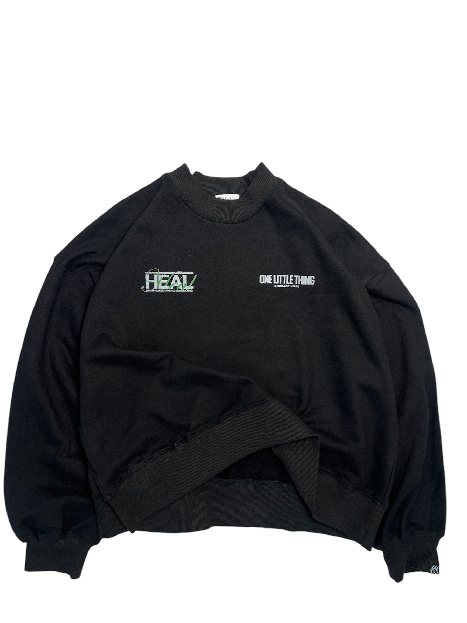 Healing Sweater in black – A cozy blend of style, comfort, and purpose, this sweater is designed to offer both warmth and a message of hope. With its oversized, relaxed fit and 280gsm fleece, it provides lightweight warmth suitable for all seasons. The sweater features ribbed hem, cuffs, and neckline for a clean, structured finish, and the unisex sizing ensures a true-to-size fit.